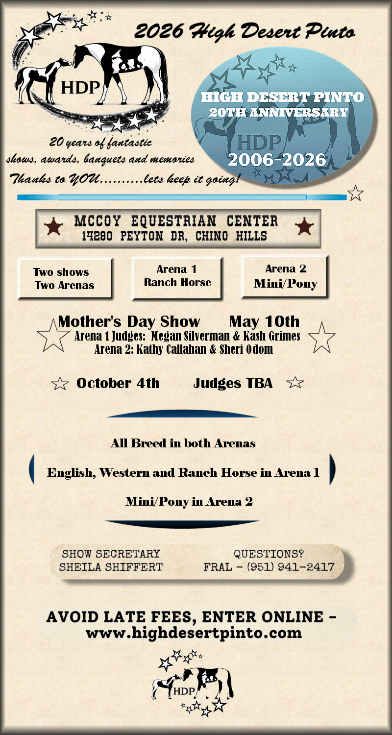 High Desert Pinto Horse Association, established in 2006, is a proud